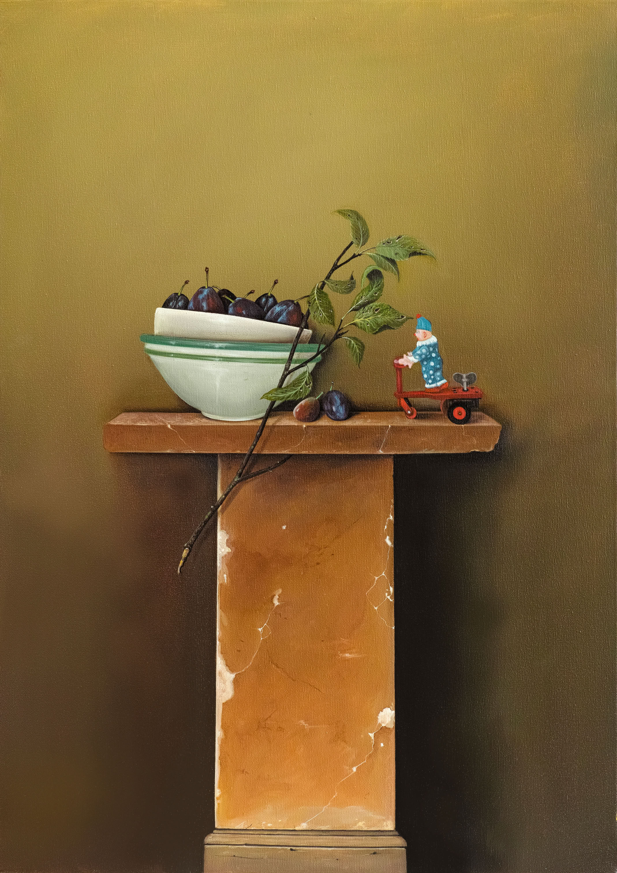 Doch die von Joan Moreno dargestellten Gegensätze erstrecken sich auch auf weitere Gebiete: Zwar ist das Bild als solches fix und die dargestellten Gegenstände unvergänglich, dennoch betont Moreno in seinen Werken gerade die Vergänglichkeit der Objekte. Einstige Symbole des Fortschrittes sind auf seinen Bildern zu nostalgischen Erinnerungen einer „guten, alten“ – aber uns dennoch noch vertrauten und nahen – Zeit geworden. Es ist diese Nähe der dargestellten Vergangenheit zu unserer Gegenwart, die sie in unserem Bewusstsein aktuell werden lässt. Und es sind die Gebrauchsspuren, die ihre Vergänglichkeit auch auf unsere heutigen Errungenschaften übertragbar macht.